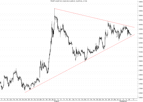 Интересно наблюдать и за Транснефтью (TRNFP). «Треугольник» становится все уже и уже, а хороший выход все ближе и ближе.