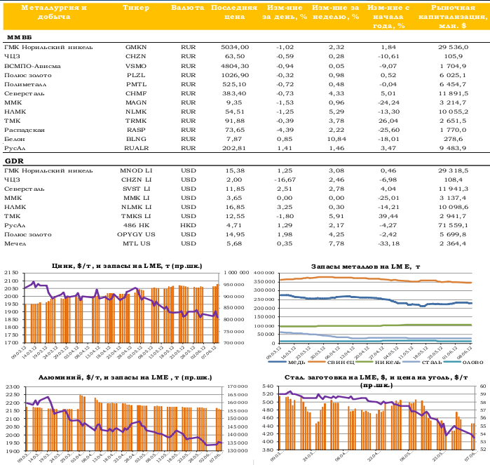 Индекс сырьевого сектора ММВБ MICEX М&М снизился на 0,42%, на РТС RTSmm прибавил 0,21%.
