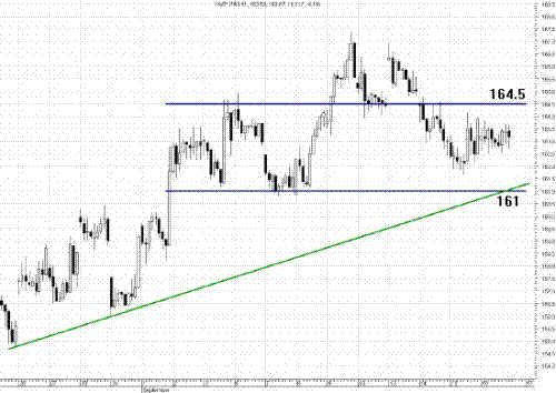 По Газпрому (GAZP) ситуация нейтральная — закрепиться выше 165 не получилось и бумаги вновь вернулись в диапазон 161-164,5 р./акцию.