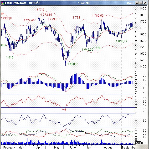 Из этого проистекает наш прогноз динамики рынка: открытие с разрывом наверх 0,35% и последующее снижение банковских акций на уровни вчерашнего закрытия /как минимум/. По-прежнему, есть сигналы на удержания «коротких» позиций в акциях «ВТБ» (VTBR). По «Сбербанку» (SBER) таких сигналов нет /»медвежий» сигнал может образоваться при пробитии уровня 86,9 с последующим возвращением/. По «ЛУКОЙЛу» (LKOH) может образоваться «мегаигровой» момент на продажу при росте до 1790 /полный набор «медвежьих» дивергенций/.