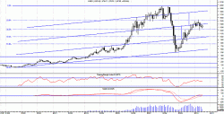 Показательной является и картина на месячном графике индекса ММВБ. Восходящий тренд, взявший старт в 2009 году, несмотря на некоторую заминку, здесь по-прежнему в силе. То есть это рынок «быков», а не «медведей». RSI находится лишь чуть выше значения в 50, и говорить о достижении зону перекупленности и тем более «медвежьих» дивергенциях еще очень рано. MACD также еще только вернулся в положительную область и предыдущих пиковых значений, соответствующих историческому максимуму по индексу ММВБ, не достиг. Таким образом, на более старших графиках рынок по-прежнему – «бычий».