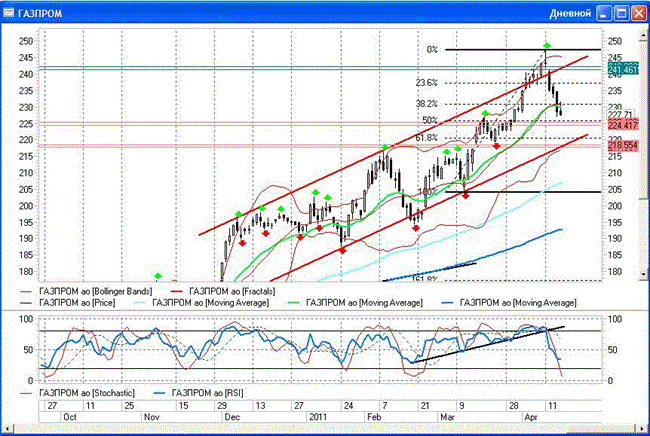 Пока мое предположение о том, что в качестве ближайшей зоны спроса для бумаг «Газпрома» (GAZP) выступит район незакрытого «гэпа», расположенного на уровне 224,49-225,37 рублей, оправдалось. Акции в пятницу и снижались до отметки 227,14 рублей и поднимались до уровня 231,78 рублей.