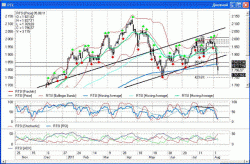 Индекс РТС в ходе пятничных торгов тоже максимально приближался к своему годовому минимуму, расположенному на уровне 1760,36 пунктов, однако обновить его не смог, остановившись на отметке 1769,83 пунктов.