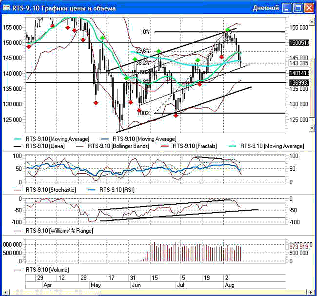 Фьючерс на индекс РТС /RiU0/ уперся в линию промежуточной поддержки, однако я полагала, что движение может продлиться до 140,5-141 тысячи пунктов, в район 50% коррекции. Если разворот будет формироваться с текущих рубежей, то мы можем твердо заявить о том, что этот уровень станет фундаментом будущего восходящего тренда. Сейчас на более мелких тайм-фреймах /час, Н4/ образованы небольшие конвергенции, поэтому покупая спекулятивно фьючерс, не забудьте расположить свой «стоп» за вчерашний минимум, а также помните о кратковременности данного сигнала на меньших масштабах. Я полагаю, что фьючерс на индекс РТС при восстановлении может подняться до 146-147 тысяч пунктов».