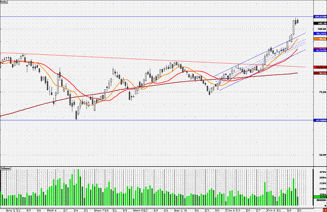 Ближайшие уровни сопротивления: 105,00/109,00/110,00