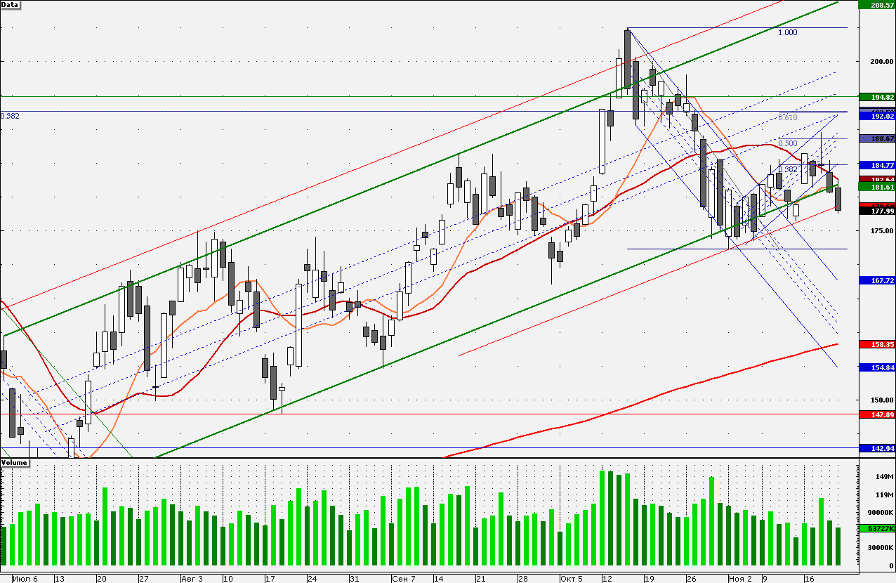 После окончания торгов на отечественных площадках ситуация на внешних рынках улучшилась. Основной позитив – в ценах на нефть, которые после окончания сессии на российском рынке накануне отскочили вверх более чем на 1,5%. В результате фьючерс на марку Brent вернулся выше $78 за баррель. Ближайшее сопротивление по акциям, от которого стоит сокращать позиции, лежит на уровне 10-дневной скользящей средней (181,80 руб.). Ближайший уровень поддержки лежит в районе нижней границы ценового коридора.