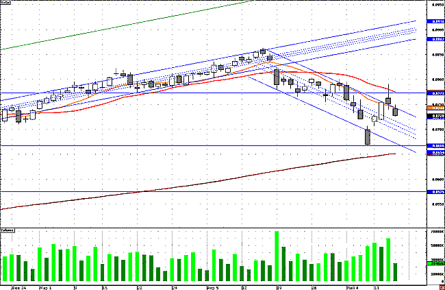 Внешние сигналы для котировок акций сектора носят негативный характер, что будет оказывать давление на котировки акций российских банков в ходе торговой сессии. Поддержкой выступит уровень в районе 7,00 коп. Ближайшее сопротивление по акциям при смене настроений в ходе торговой сессии выступит верхняя граница нисходящего канала.