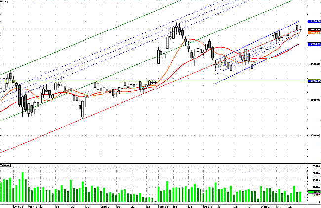Внешние сигналы носят негативный характер. Пара EUR/USD вновь взяла курс на годовые минимумы, что усиливает риски продолжения снижения на сырьевых площадках. Ближайшая поддержка по акциям лежит на уровне 10-дневной скользящей средней /4942 руб./, при пробитии вниз которой целью станет нижняя граница краткосрочного восходящего канала. Ближайшее сопротивление лежит на верхней границе краткосрочного восходящего канала.