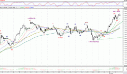 На данный момент индекс ММВБ торгуется в расчетном коридоре 1455-1470 пунктам в рамках формирования волны с. В волне с теперь сформированы 5-ть внутренних волн/красные цифры/,что пока подтверждает наличие дивергенции по часам.
