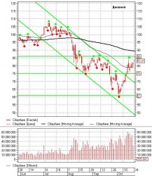 Бумаги Сбербанка в начале прошлой недели демонстрировали коррекцию. Тем не менее, последние три дня акции показывали восстановление. На данный момент ближайшей целью является достижение уровня в 86 руб., после чего рекомендуем зафиксировать полученную ранее прибыль.