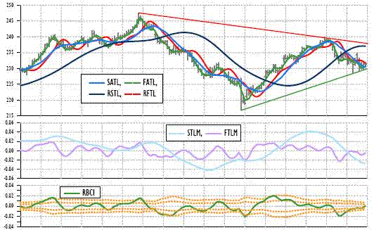 Адаптивная линия тренда SATL и опережающий индикатор STLM прошли свои локальные минимумы и возобновили рост. «Быстрые» индикаторы /FATL, FTLM и RBCI/ тоже «смотрят» вверх.