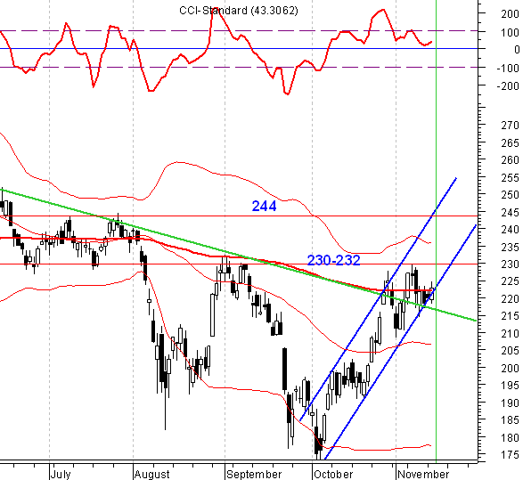 Акциитакже выглядят неплохо. Это акции мечта любого авиаконструктора — они могут взмывать наверх даже без крыльев (положительных новостей). Котировки находятся вблизи нисходящего тренда. После его пробития жду роста в район 200-210. Акции(прив.) традиционно двигаются в коридоре, шириной 3 рубя (на данный момент 13 — 16). От верхней границы коридора сегодня произошел откат — вдохновляет, что в случае пробитие верхней границы, котировки перейдут в коридор 16-19. Котировкиконсолидируются вблизи 200-ой скользящей средней (ЕМА). Индикаторостается в зоне покупки. Восходящей канал с 05.10.11 остается в силе (верхняя граница канала проходит на уровне 244). Уровень 244 это, но зона сопротивления 230-232 это, которую мы поймаем очень скоро.