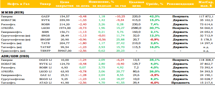 В лидерах на ММВБ акции Газпрома (-0,48%) и акции ЛУКОЙЛа (-0,73%). В аутсайдерах бумаги Транснефти (-2,56%) и акции Роснефти (-2,40%).