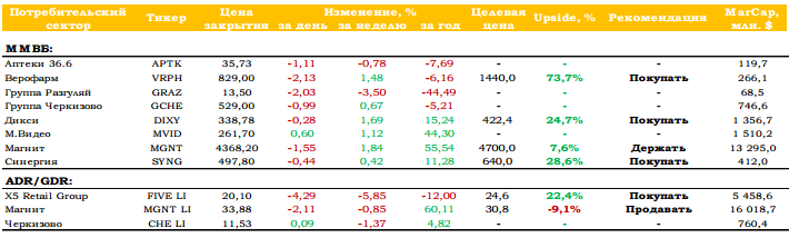 Индекс компаний потребительского сектора MICEX CGS опустился на 0,75%, RTScr потерял 0,79%.