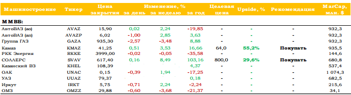 Лучше рынка торговались акции Камаза, которые выросли на 0,51%, хорошо смотрелись бумаги СОЛЛЕРСа (+0,16%). В аутсайдерах бумаги группы ГАЗ (-2,57%) и акции АвтоВАЗа (ап) (-1,00%).