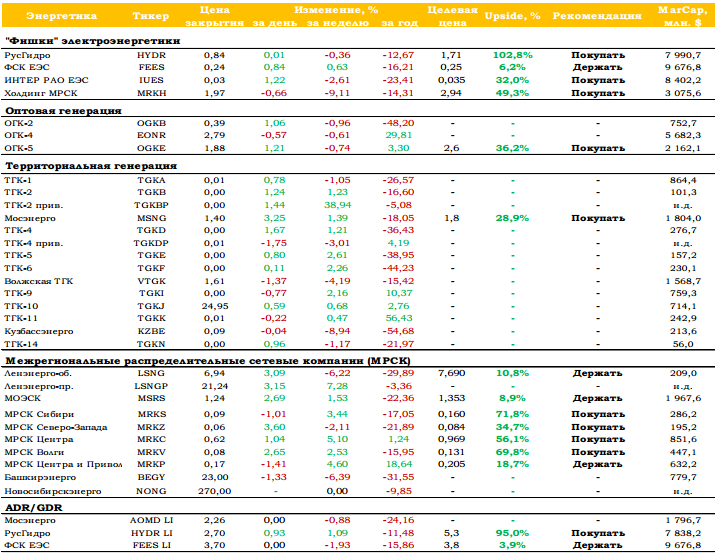 Индекс компаний электроэнергетики MICEX PWR вырос на 0,52%, на РТС отраслевой индекс RTSeu прибавил 0,73%.