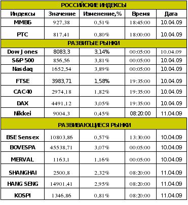 Утренний комментарий по фондовому рынку от 14 апреля 2009 года