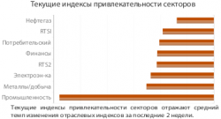 В отраслевом спектре на минувшей неделе отмечалась смешанная динамика. Наибольшим повышением за неделю в РТС выделился индекс сектора Нефтегаз (+3,7%). Вместе с тем аутсайдерами недели оказались индексы секторов ”Металлы/добыча” (-2,4%), и “Потребительский” (-2,1%).