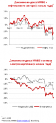 В секторе металлургии покупки возможны в бумагах Северстали, которые торгуются в диапазоне 365-400 руб. Сейчас акции отскочили от нижней границы данного коридора и направились вверх. В случае преодоления отметки в 400 руб. рекомендуем накапливать бумаги данного эмитента.
