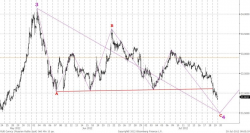 Полагаем, окончательной целью волны 5 будет отметка 1490 пунктов. В среднесрочной перспективе, смягчение кредитно-денежной политики, которое предприняли ЕЦБ и НБК, а также ожидаемые шаги ФРС по продолжению количественного смягчения поддержат цены на нефть. На часовом графике 2 Brent сформировал и «отработал» разворотную фигуру «голова и плечи», достигнув отметки $108,18. В ближайшие дни можем увидеть откат цен к $102,5. Полагаем, после этого котировки Brent предпримут попытку роста. В долгосрочной перспективе формируется плоская коррекция, как следует из графика 3. Минимальная точка коррекции уже достигнута. Ждем роста котировок Brent к отметке $115.