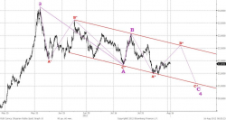 Валютная пара доллар/рубль продолжает формировать волну В* волны C, см график 7, достигнув ранее поддержки – нижней красной линии. Целью волны В* является отметка 32,20 Полагаем, в ходе сегодняшних торгов российская валюта будет находиться в диапазоне 31,8 -31,9 к доллару.
