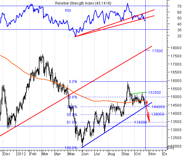 Сегодня некоторые «медведи» замешкались откупить фьючерс на индекс РТС в районе пятимесячного повышательного тренда и уровня коррекции 38,2% по FIBO (144000) и в результате фьючерс отскочил наверх. На часовых графиках прошли большие объемы — очень похоже на локальный разворот индекса наверх. Возможная цель роста 148000. До уровня 152500, где проходит тренд уже не дотянуть – на индикаторе RSI пятимесячный восходящий тренд уже пробит вниз, недельные графики нефти выглядят очень бедово, ждем развития ситуации в США. От уровня 148000 рынок опять может развернуться вниз и опять протестировать поддержку 144000. А далее возможны варианты… Если американский индекс S&P-500 найдет поддержку на уровне 1390-1400, то «пропиловка» фьючерса вокруг 200-х сотой скользящей средней (дневные) продолжиться. Начнет «валиться Америка», фьючерс на индекс РТС снизится до уровня 134000, где находится поддержка по FIBO (промежуточная остановка на уровне 138000).