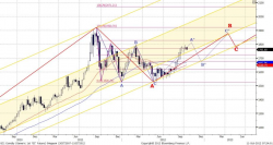 В настоящий момент формируется волна роста «В» в рамках «плоской коррекции» А-В-С. Коррекции предшествовала без малого трехлетняя фаза роста. Вполне логично, что период компенсации роста предположительно будет длиться порядка полутора лет и, по нашим расчетам, завершится в первом квартале 2013 года, после чего начнет формироваться следующая волна подъема котировок.