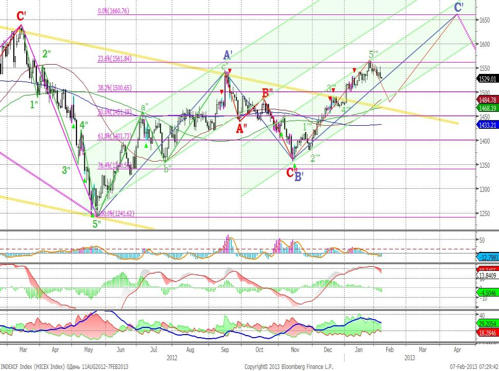 Структура роста (середина ноября 2012 года – январь 2013 года) выглядит завершенной, в связи с чем, в ближайшее время ожидаем развития коррекционного снижения в рамках восходящего тренда.