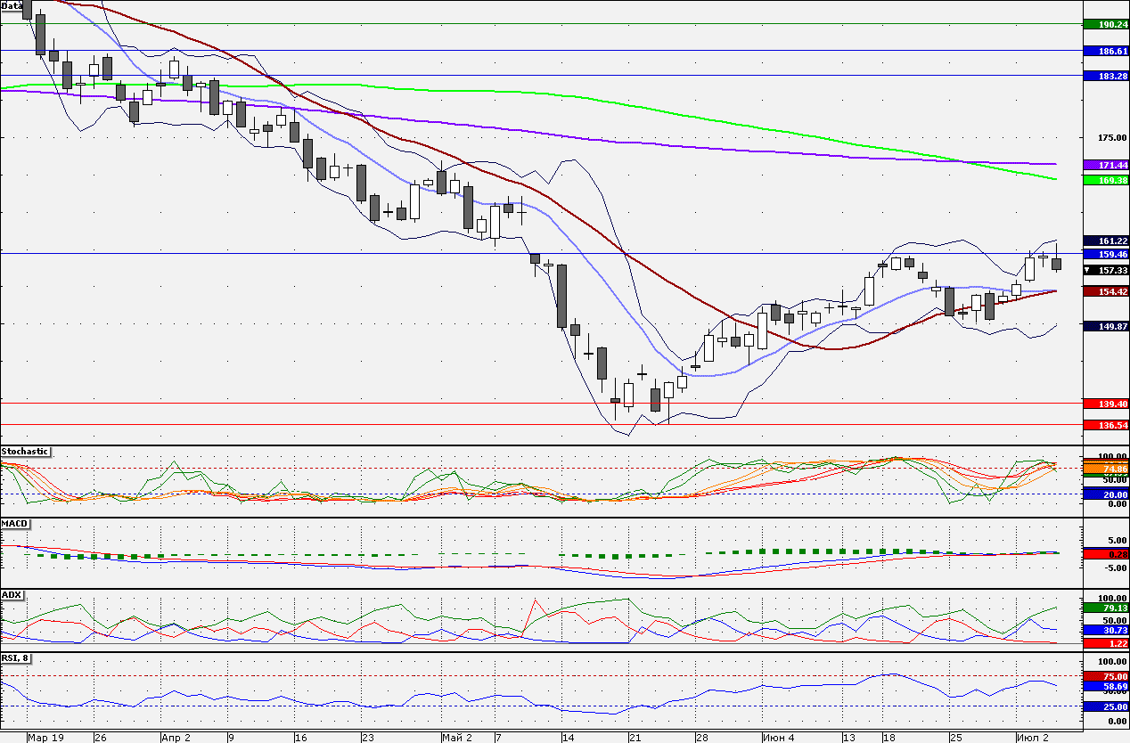 Ближайшие уровни поддержки: 155,00/154,50/150,00/145,00