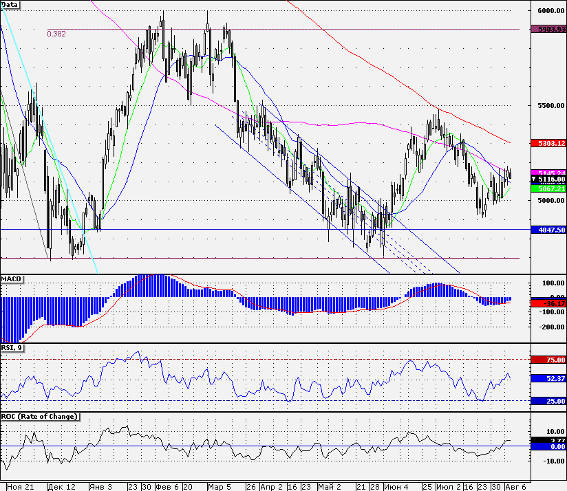 Ближайшие уровни поддержки: 5100,00/5070,00/5000,00/4900,00