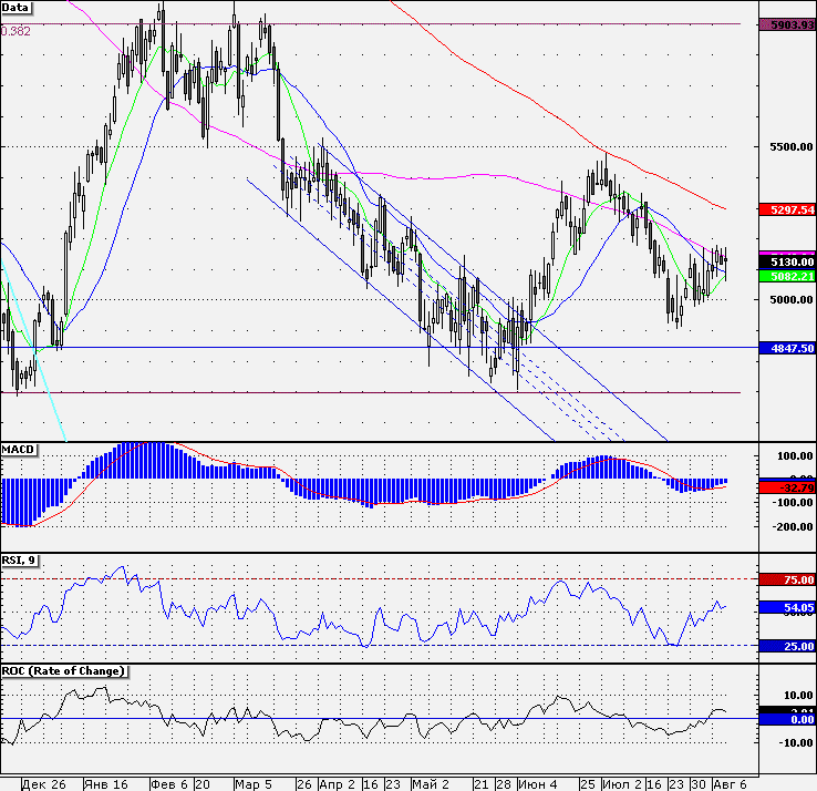 Ближайшие уровни поддержки: 5100,00/5060,00/5000,00/4900,00