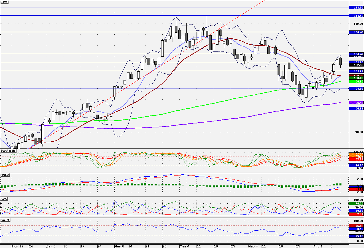 Ближайшие уровни сопротивления: 103,00/104,42/105,00