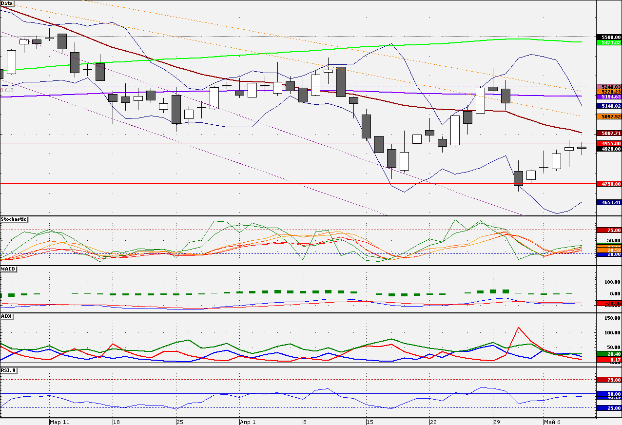Ближайшие уровни поддержки: 4900,00/4800,00/4750,00/4500,00