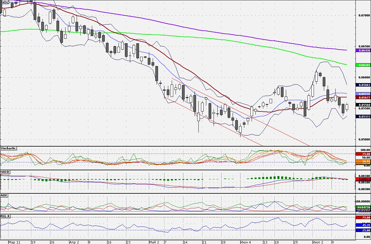 Акции ВТБ закрылись выше 5,5 коп. Сопротивлением является 21-дневная скользящая средняя – 5,677 коп. От данной отметки «лонги» стоит сокращать. Поддержкой является 5,38 коп.