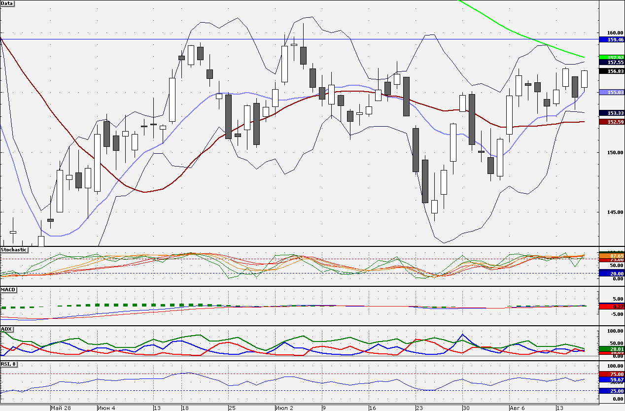 Ближайшие уровни сопротивления: 157,00/158,00/160,00