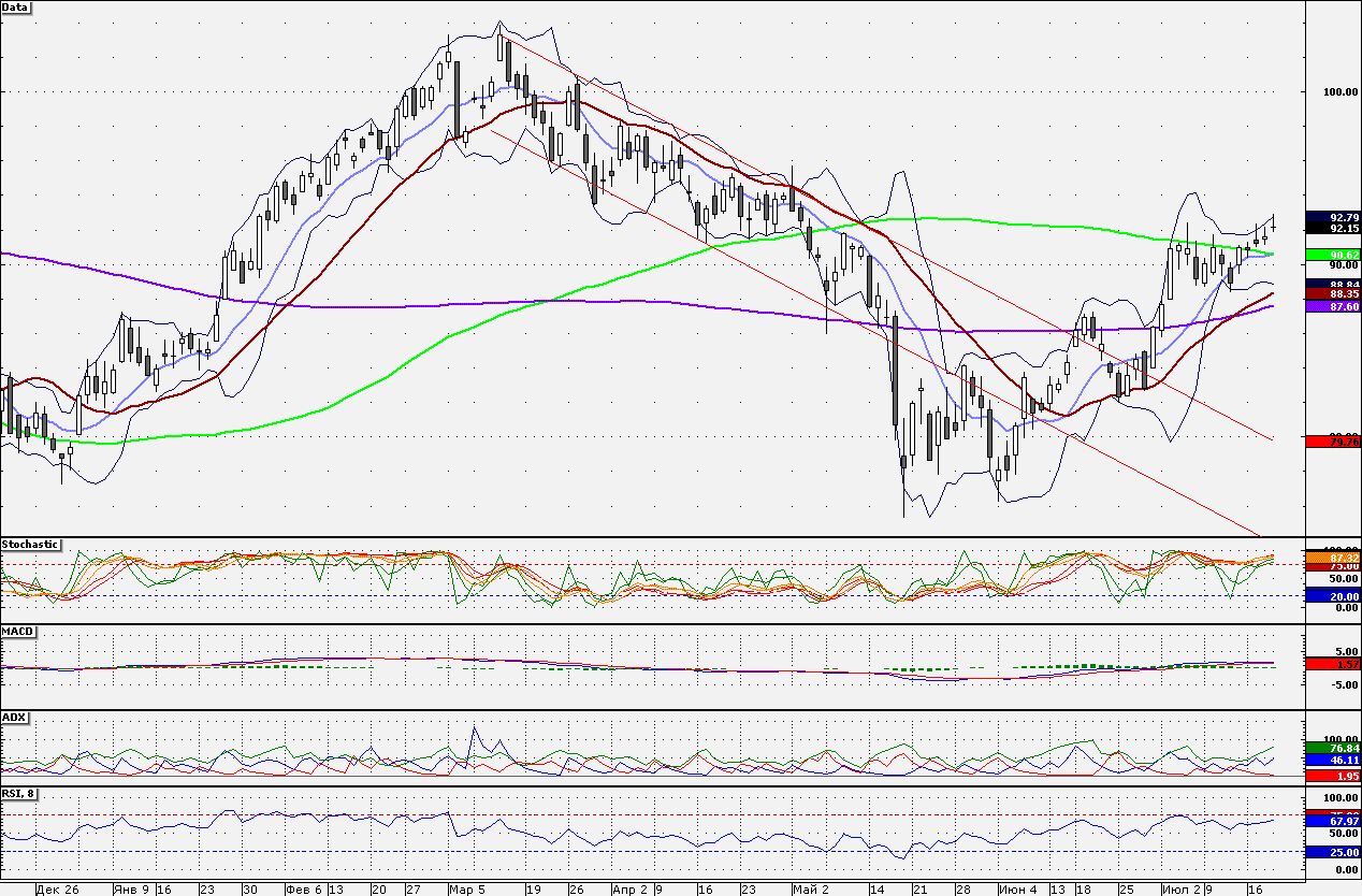 Ближайшие уровни сопротивления: 93,00/94,00/95,00