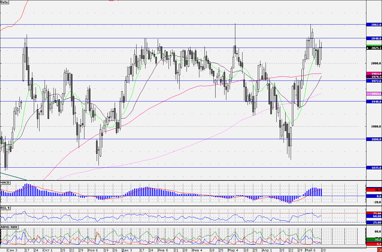 Ближайшие уровни сопротивления: 2040,00/2050,0/2063,5/2100,0