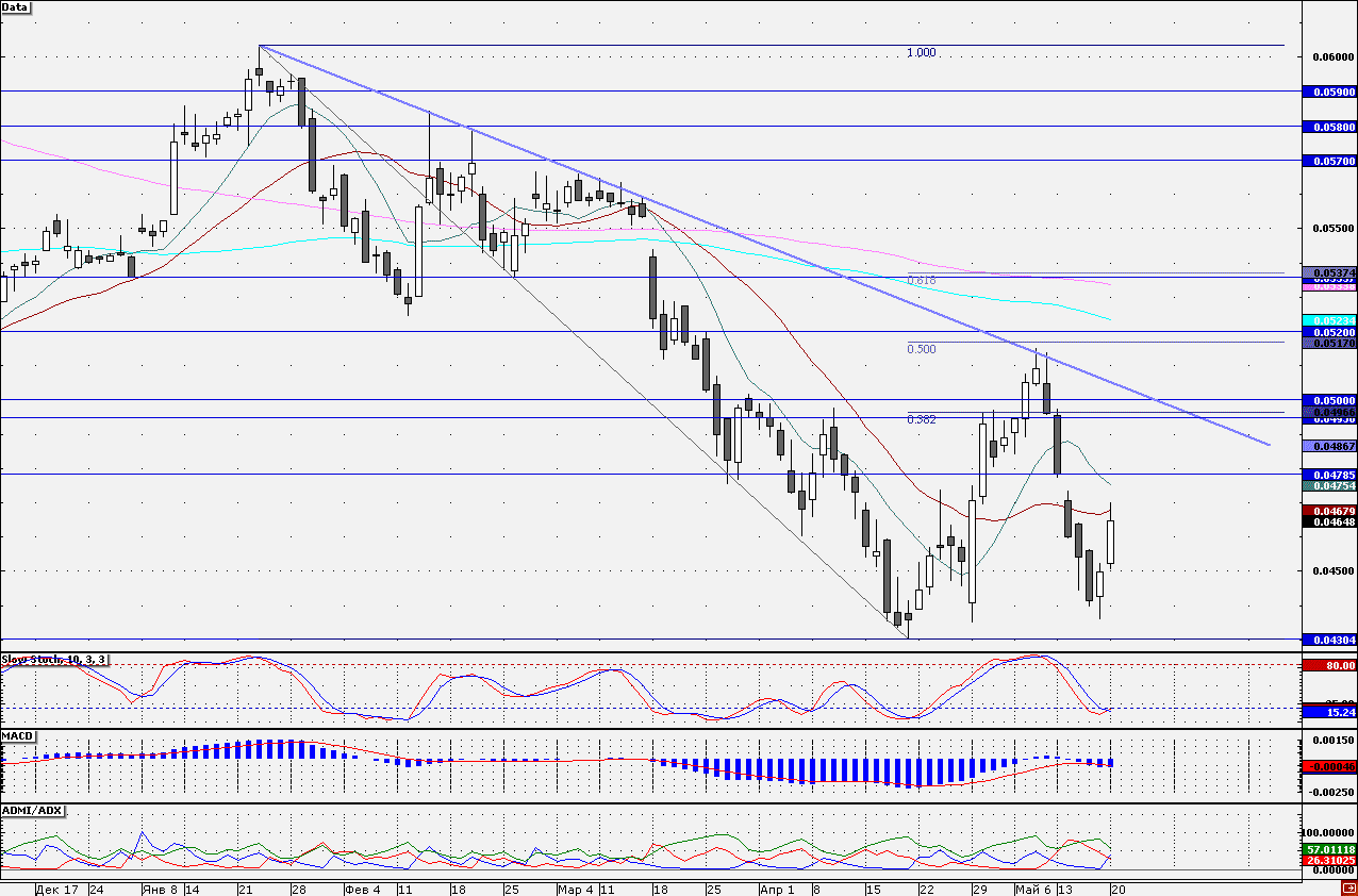 Акций ВТБ в понедельник тестировали на прочность 21- дневную скользящую среднюю – 4,679 коп. Сегодня «быки» вновь могут сформировать атаку данной отметки, однако, скудный новостной фон в течение сессии может препятствовать закреплению акций в новом ценовом диапазоне. Так, при повторном тестировании уровня 4,679 коп. спекулятивные «лонги» стоит сокращать. Ближайшей поддержкой для акций является отметка 4,500 коп.