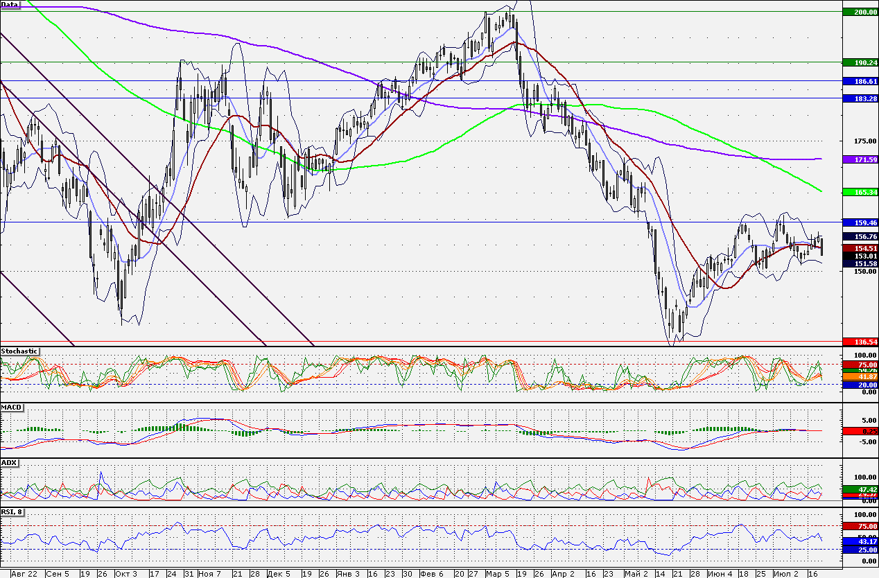 Ближайшие уровни сопротивления: 154,50/157,50/160,00/165,00