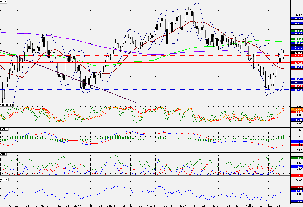 Ближайшие уровни поддержки: 1730,00/1700,00