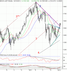 Таким образом, революционная ситуация пока разрешилась в пользу «медведей». Минусом для «быков» является и то, что объёмы торгов на снижении возросли. И сегодня на утреннем умеренно-негативном внешнем фоне им снова придётся обороняться. Пока за их спиной отличная поддержка в лице покорённого неделю назад долгосрочного падающего тренда (9) (~1520 п.), чуть ниже проходит и верхняя грань уже подзабытого большого «треугольника» (~1500 п.). Так что в целом пока ничего страшного для покупателей нет – происходит коррекция к пятинедельному росту. И здесь главное для «быков», чтобы «медведи» не заигрались в революцию и не отвоевали тренд (9) обратно.