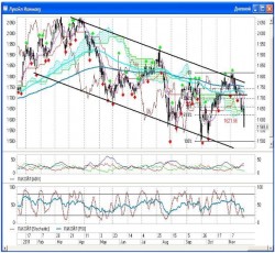 Хочу обратить внимание биржевиков на тот факт, что наши индексы сильно отстают от западных в снижении. Благодаря некой консолидации на часовом графике индекса РТС сформирприходится 61,8% коррекция к октябрьскому росту и в случае удержания уровня 1363,83 пунктов, можно будет рассчитывать на возобновление восходящего движения.