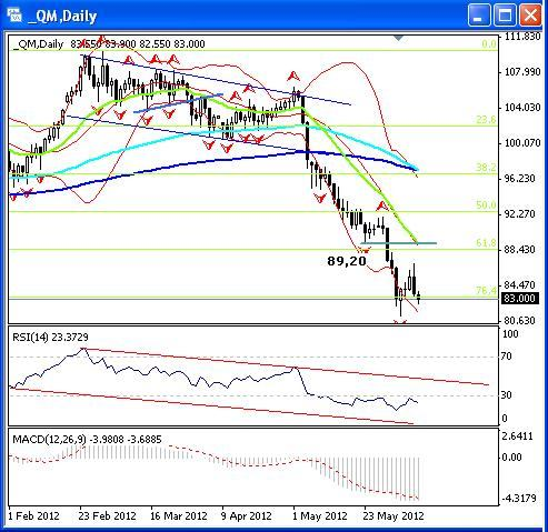 Учитывая, что цены не смогли даже подняться до вышеуказанных уровней и уже снова начали снижаться, не исключено, что мы ранее увидим обновление минимума 4 июня, находящегося на 81,125$ за баррель.